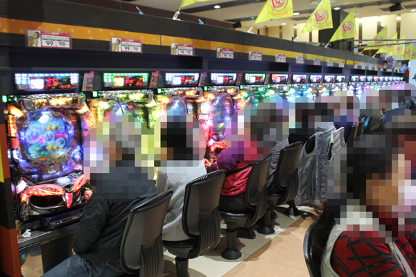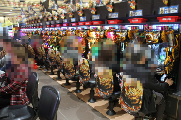 16時を過ぎたころの4円パチンココーナーでは、「ぱちんこCR真・北斗無双」などの北斗シリーズや「CR牙狼GOLDSTORM翔」が特に盛況。機種の性能を最大限に発揮しているプレイヤーも見られ、コーナーは活気に満ちあふれていた。