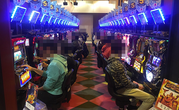 5円パチスロの稼働率も高く、笑顔のプレイヤーが多い。