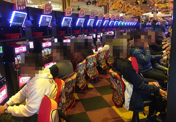 パチンコ・パチスロともに盛り上がっていた「マルハン綾瀬上土棚店」。プレイヤーの笑顔からは、有意義な時間を過ごしていることも伝わってきた。