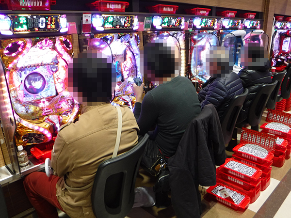 取材当日の店内には、多くのプレイヤーが来店。貸し玉料金を問わずに、随所で盛り上がりを見せていた。