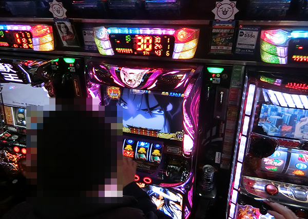 14時をまわった頃の1000円/47枚パチスロにおいて、ひときわ盛り上がっていたのが「バジリスク~甲賀忍法帖~絆」。機種の特徴を活かしているといったプレイヤーが目立ち、明るい雰囲気がシマ内を包みこんでいた。