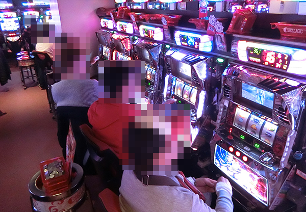 14時を過ぎた頃になっても、1000円/47枚パチスロでは「バジリスク~甲賀忍法帖~絆」が盛況。シマ内に広がる笑顔が満足度の高さを物語っていたように思う。