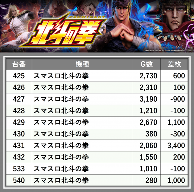 ※台番順に掲載しています