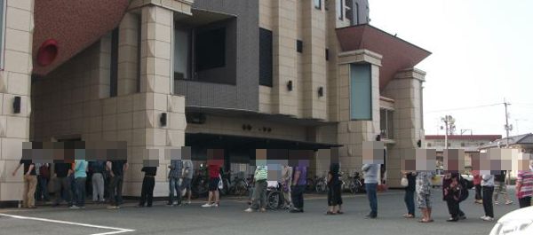 当日は事前に配布された入場整理券を貰っていた68名のプレイヤーが並んでいた。開店時間が近づくにつれ、一般入場者も続々と集まり朝イチから大きな賑わいをみせていた。