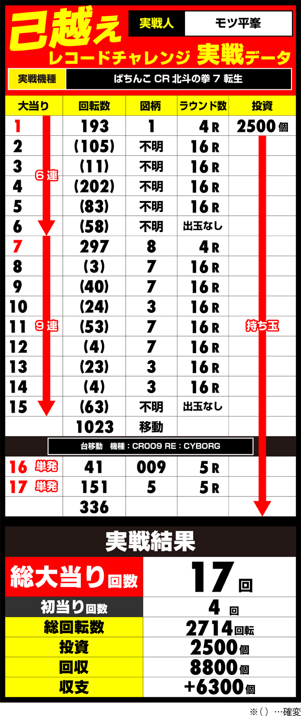 最高記録更新に近づいていただけに、最後まで諦めずに同じ台を打ってほしかったところだ。