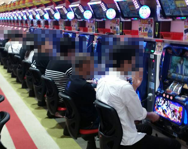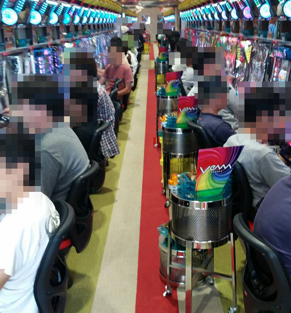 パチンコでは海物語シリーズで多数のプレイヤーが遊技を開始しており、早くも半数以上の台にプレイヤーの姿があった。