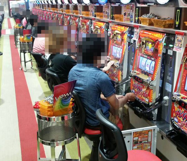 5円パチスロの賑わいも大きく、ほぼ満席状態。