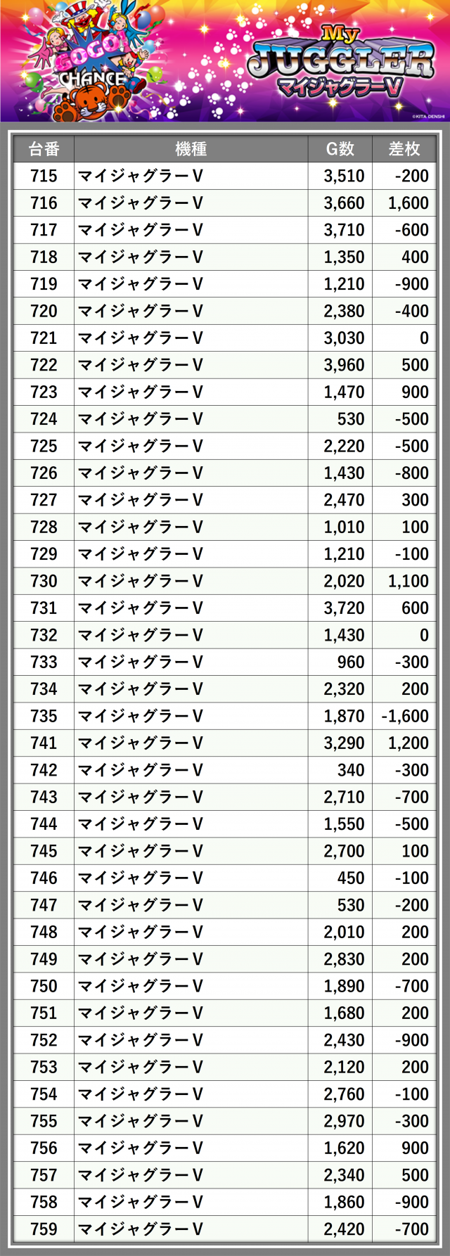 ※差枚数順に掲載しています