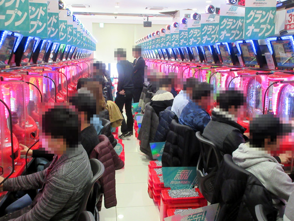 オープン直後は、パチンコ・パチスロ共に定番機種を中心に大きく盛り上がっており、なかには空台を探すプレイヤーであふれかえっているコーナーも見られた。