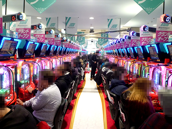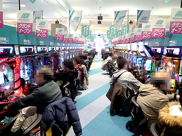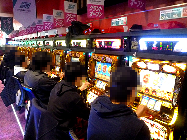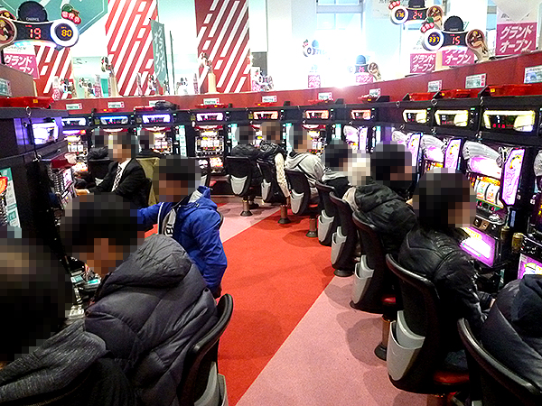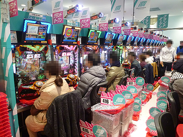 開店直後の4円パチンココーナーを見てみると、「CR真・花の慶次2」がすぐに人で埋め尽くされるほどの大人気。今後の展開に胸を膨らませている様子が伝わってきた。