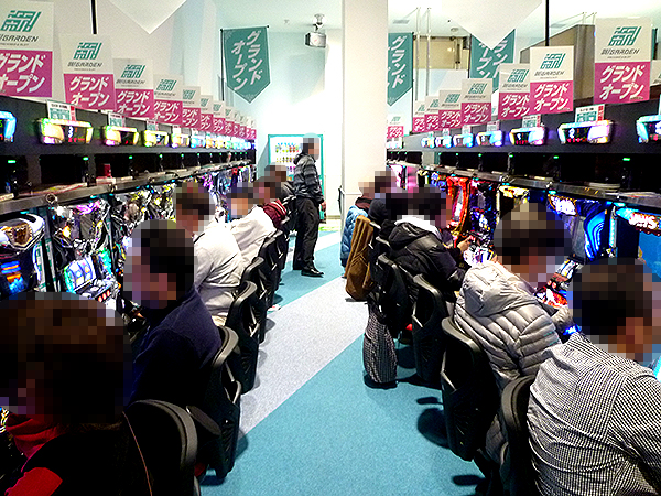 取材当時はグランドオープンの翌日ということもあり、開店前から500名を超えるプレイヤーが集合。プレイヤーからの大きな期待をあらわすような大行列ができていた。