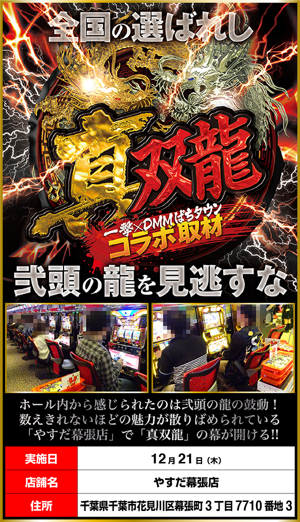 華やかな光景が広がっている「やすだ幕張店」を舞台に、「真双龍」を開始した。