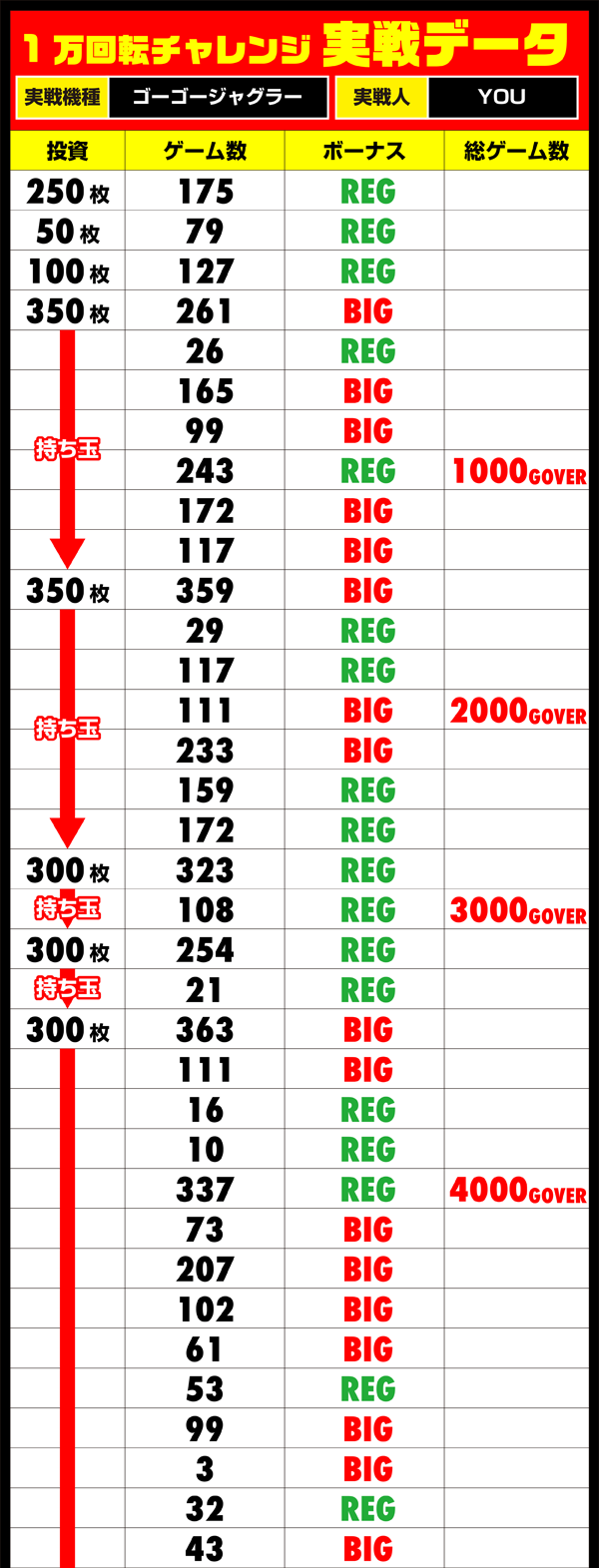 1万回転未達成かつマイナスの差枚と、とても悔しい結果となった。