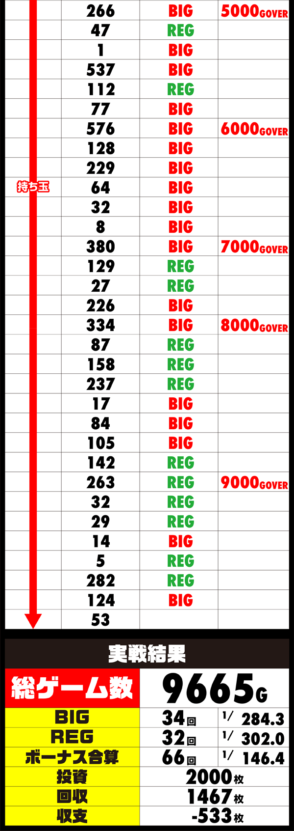 5900Gを越えたところでのBIGの8連発にペースが乱れてしまう。