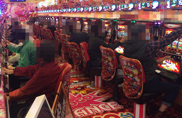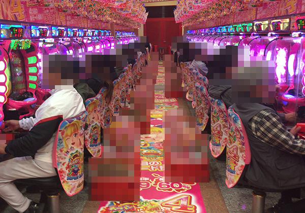 14時頃の4円パチンコでは、いくつもの場所に鮮やかな光景が広がっていた。