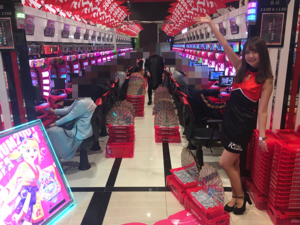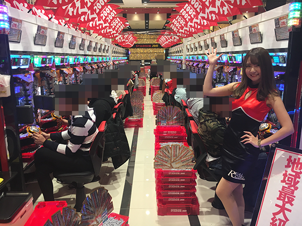 店内はすでに大勢のプレイヤーでにぎわっており、パチンコとパチスロの各シマから活気が感じられた。