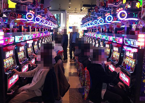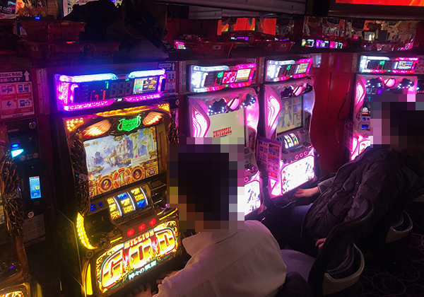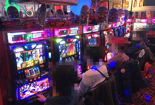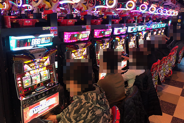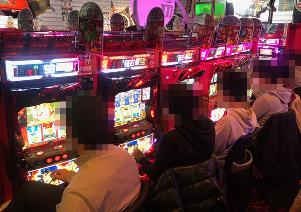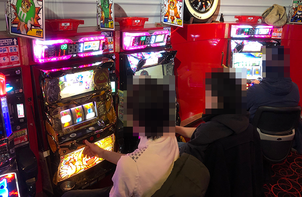 ほかにも、「SLOTバジリスク〜甲賀忍法帖〜Ⅲ」や「押忍!サラリーマン番長」など、さまざまな機種に楽しげな光景が広がっていた。
