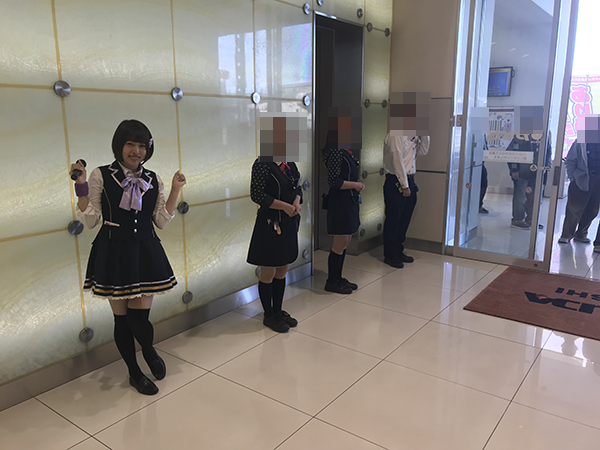 結愛ちゃんがスタッフとともにプレイヤーをお出迎え。