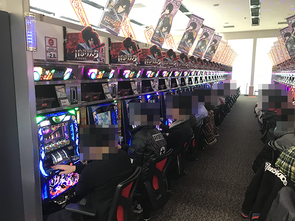厚く支持されていた「バジリスク~甲賀忍法帖~絆」をはじめ、さまざまな機種でプレイヤーたちが遊技を楽しんでいた。