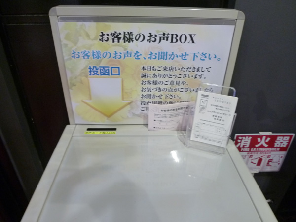 ホールには意見箱が設置されており、導入を希望する機種やサービスに関する意見など、幅広い声に対応していることにも好感を抱いた。