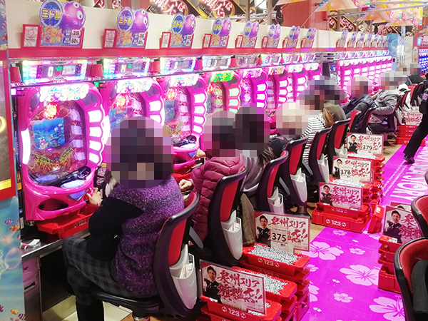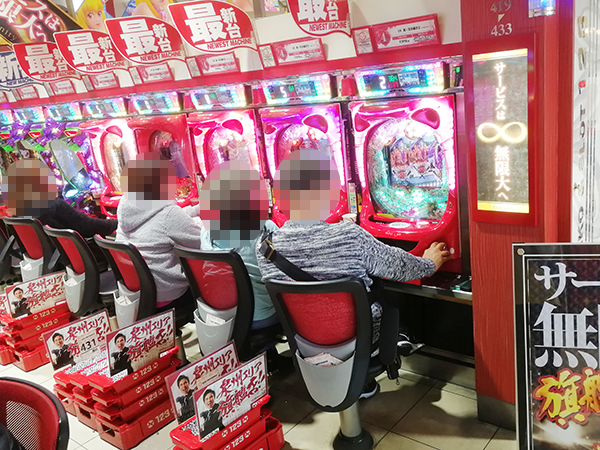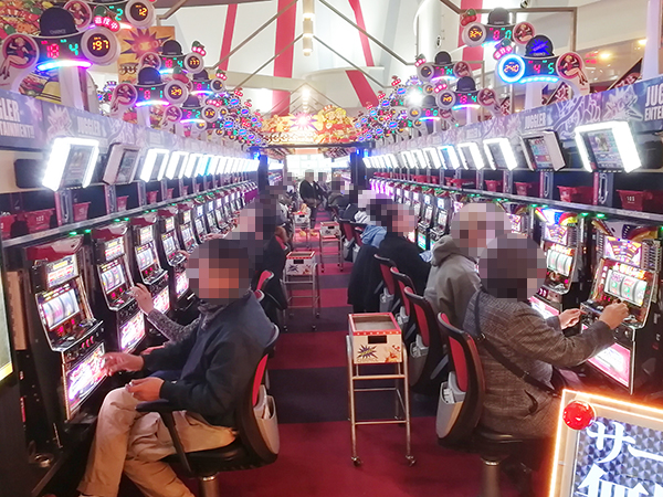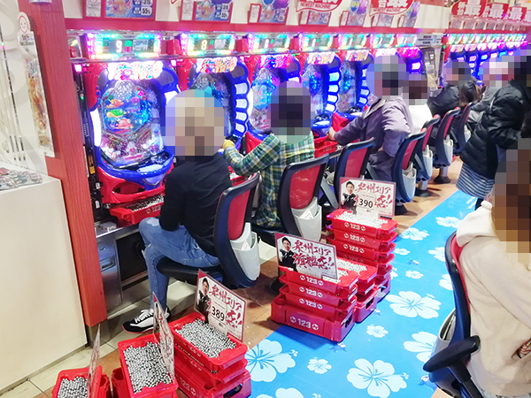 1円パチンコもほぼ満席になるほどの高稼働で、シマ全体がプレイヤーたちの活気で満ちあふれていた。