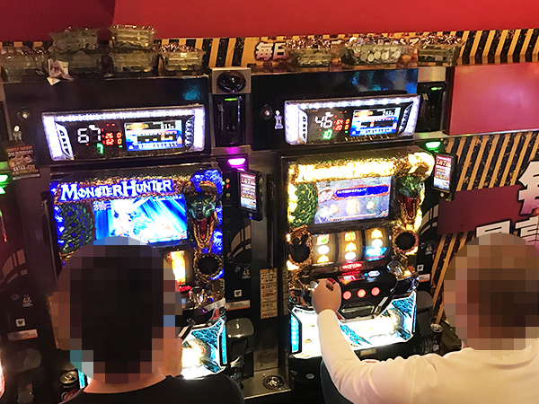 20円パチスロも盛況。「ミリオンゴッド-神々の凱旋-」や「パチスロ モンスターハンター 月下雷鳴」、「バジリスク~甲賀忍法帖~絆」など、至る所でプレイヤーたちの笑顔が見られ、心から遊技を楽しめていたように思う。