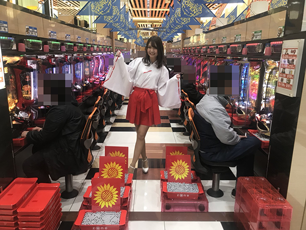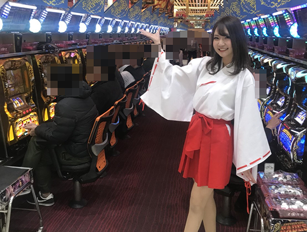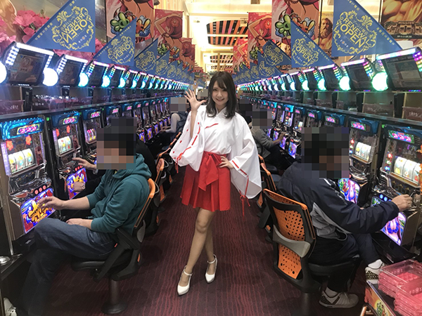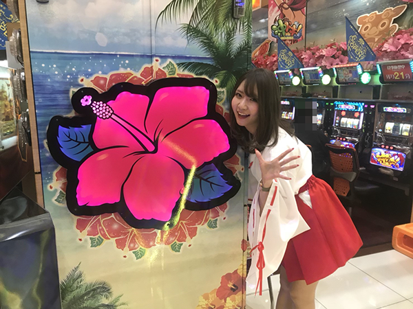パチスロコーナーでは、希依ちゃんも実戦中の「沖ドキ!」や「バジリスク~甲賀忍法帖~絆」など、高稼働をキープしている機種が多数❤