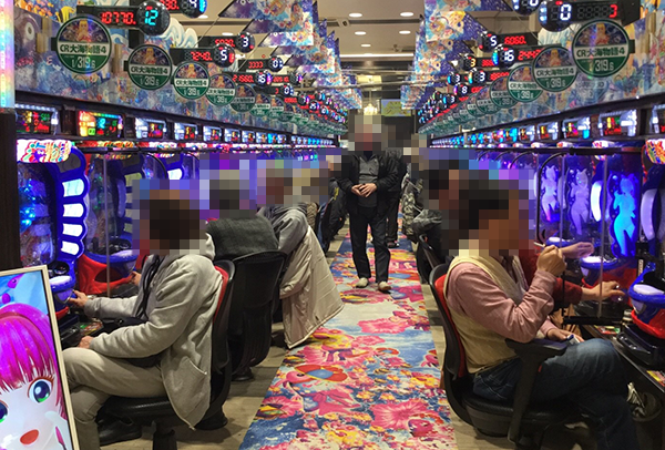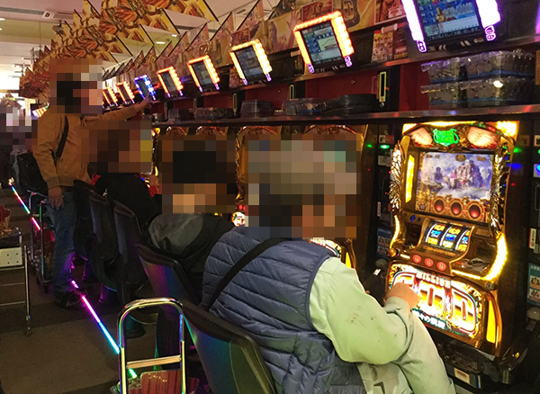 午後のパチスロをみると、前日も活気づいていた「ミリオンゴッド-神々の凱旋-」や「沖ドキ!-30」、「バジリスク~甲賀忍法帖~絆」などに、魅力的な光景が広がっていた。