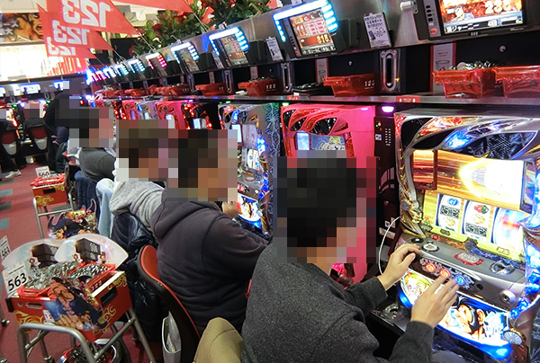 「押忍!番長3」を筆頭に、多くの場所が活気づいていた「123三木店」。プレイヤーたちの満足そうな表情からは、遊技の醍醐味を堪能していることも伝わってきた。