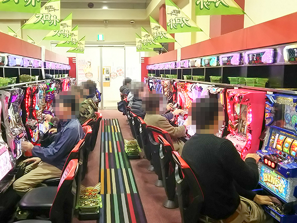 取材時は老若男女を問わず大勢のプレイヤーが遊技をおこなっており、店全体が楽し気な雰囲気に包まれていた。