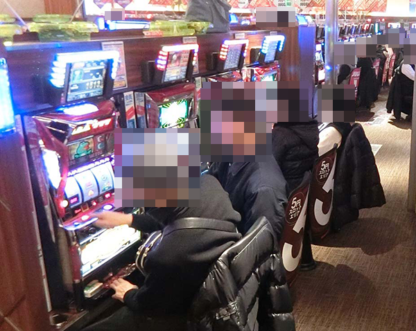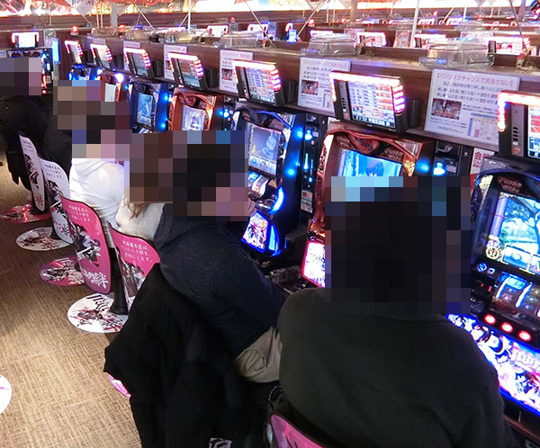 15時頃になっても、20円パチスロの「バジリスク~甲賀忍法帖~絆」が大盛況。プレイヤーのにこやかな表情からは、存分に楽しめていることが伝わってきた。
