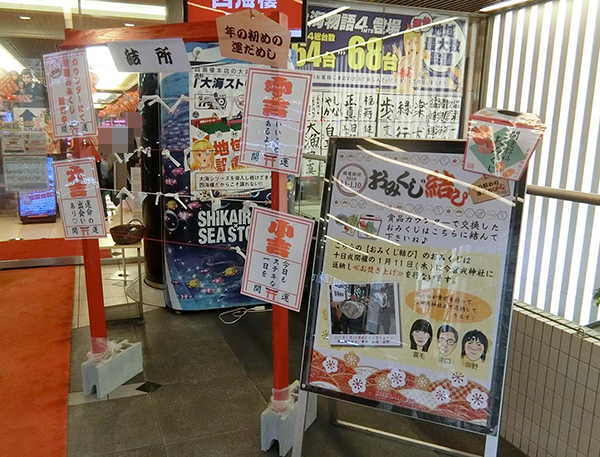 また、賞品におみくじが用意されているなど、季節にあわせたおもしろさも感じられた。ホールの入り口にはおみくじの結所があり、結んだおみくじは神社でお焚き上げをしてくれるそうだ。