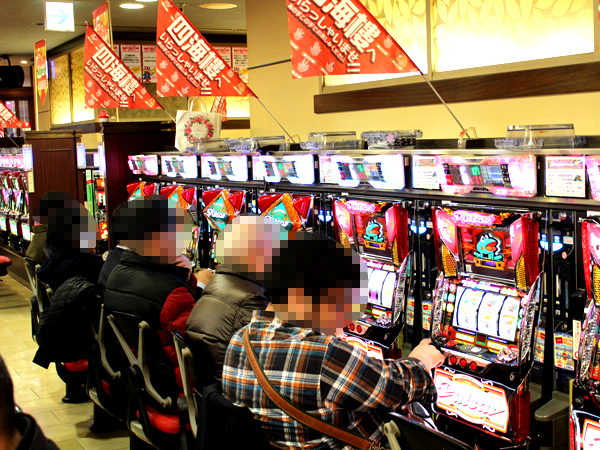 20円パチスロコーナーを見てみると、「バジリスク~甲賀忍法帖~絆」や「押忍!番長3」の人気が高い。理想的な展開も多く見られ、プレイヤーの表情も実にイキイキとしていた。