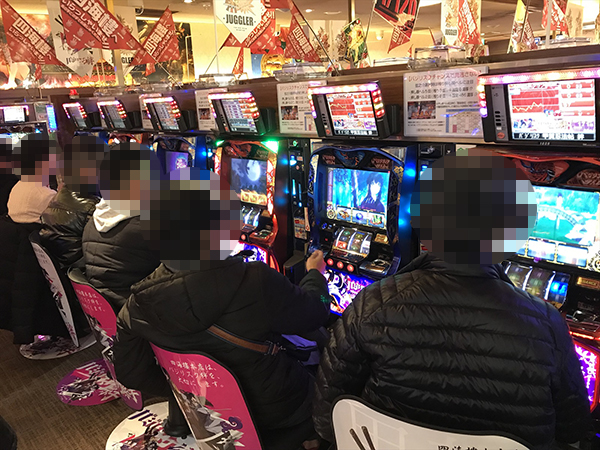この日の朝イチは、およそ100名のプレイヤーが集合。各人、スタッフの元気な挨拶に迎えられつつ、気分良さそうに入店していった。