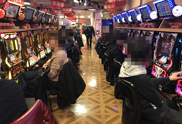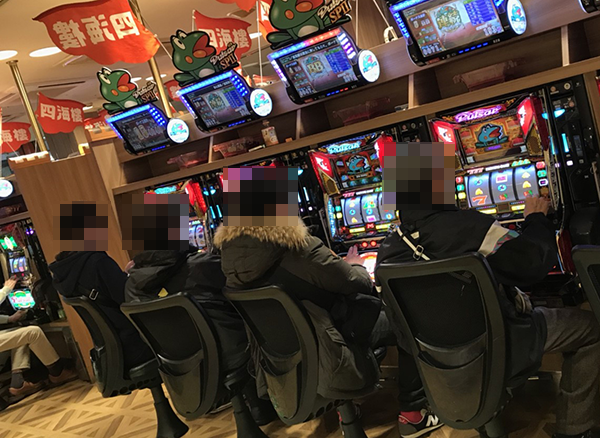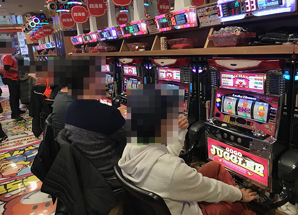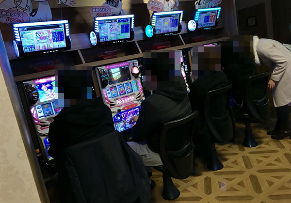定番機種であるジャグラーシリーズの支持も厚く、プレイヤーたちはイキイキとした表情で遊技をはじめていた。