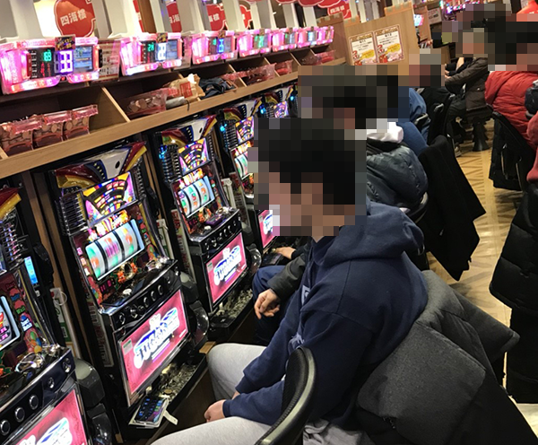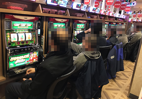 朝イチに引き続き、ジャグラーシリーズも大にぎわいといった状況。