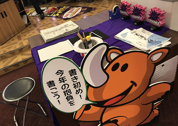 また、店内に書き初めを体験するスペースが設けられていたことも印象的。プレイヤーの作品は店頭に飾られており、さまざまな抱負をみることができた。