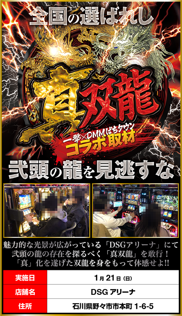 「真双龍」の舞台となったのは、パチンコとパチスロを合わせて1000台以上の総設置台数を誇る「DSGアリーナ」。