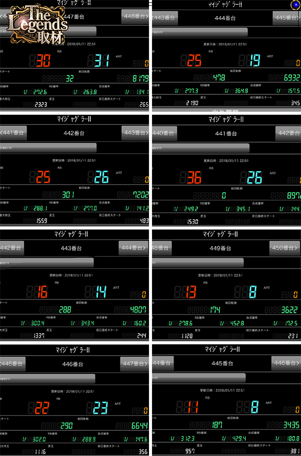 「マイジャグラーⅡ」は10台中7台が総回転数6000G以上。
