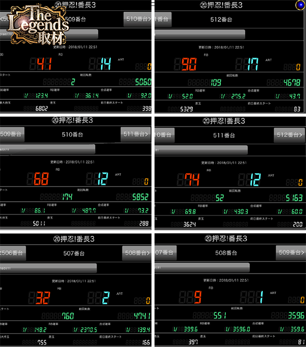 ・「押忍!番長3」も満席。6台中3台が最大獲得枚数5000枚超え