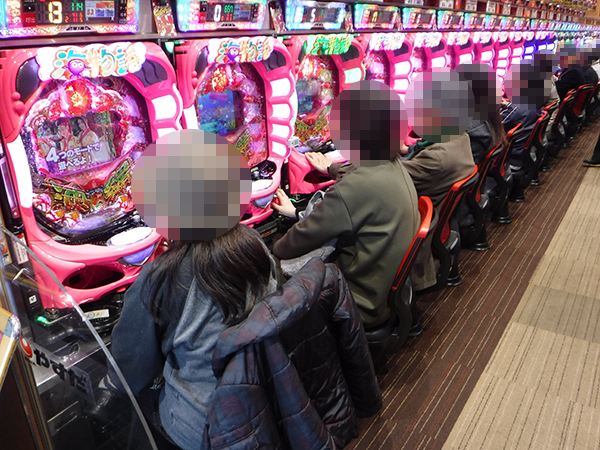 15時ごろの4円パチンコでは、「CRスーパー海物語IN沖縄4」や新台の「CR真・花の慶次2」が人気。機種の性能を発揮しているプレイヤーの姿もあった。