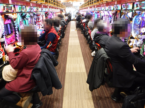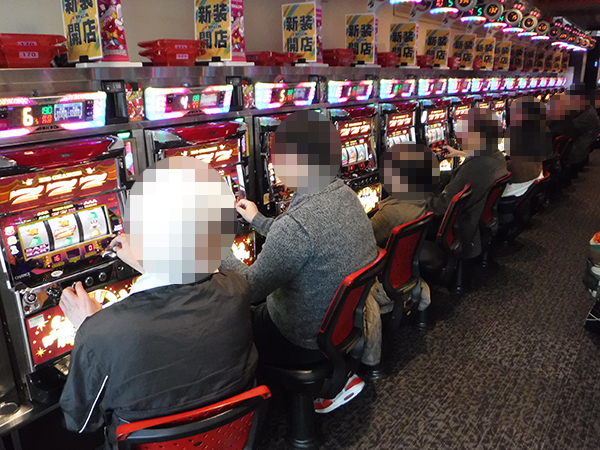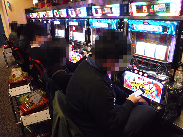 取材日の店内では、遊技を楽しんでいる多くのプレイヤーを確認。既に各所でにぎわいをみせていた。