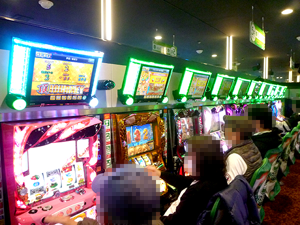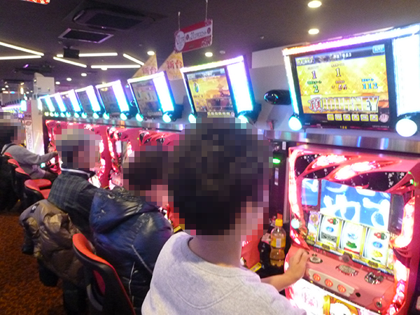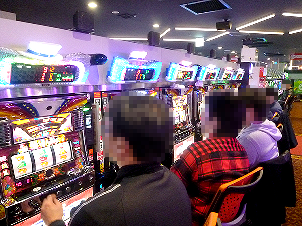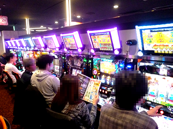 14時を過ぎた頃の1000円/47枚パチスロコーナーを見ると、「ファンキージャグラー」や「マイジャグラーⅢ」などのボーナスタイプが高稼働。華やかな遊技に引きつけられるように、シマ全体が活気づいていくのを感じることができた。