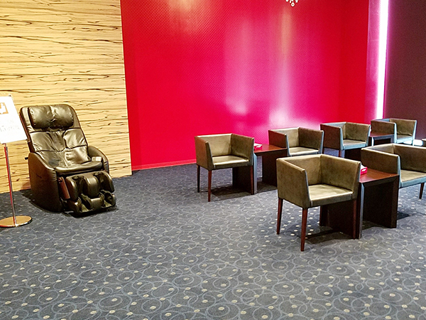 落ち着いた雰囲気のレストコーナーには、たくさんの椅子とマッサージチェアが用意されている。疲れた体をゆっくり休めることができそうだ。