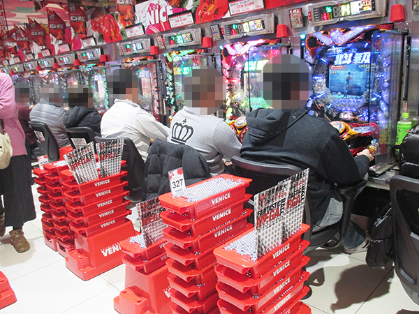 14時ごろに4円パチンコを見て回ると、「ぱちんこCR真・北斗無双」や「CRフィーバー機動戦士Zガンダム」、さらに「CR真・花の慶次2」などが大盛況。機種のポテンシャルを存分に発揮しているプレイヤーが続出し、シマ全体から活気が感じられた。