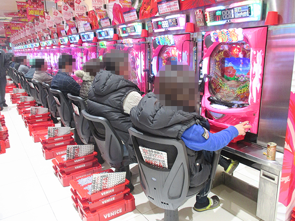 1円パチンコの機種構成は豊富なラインナップ。各人、自分に合った機種を見つけ出し、遊技を楽しんでいるようだった。