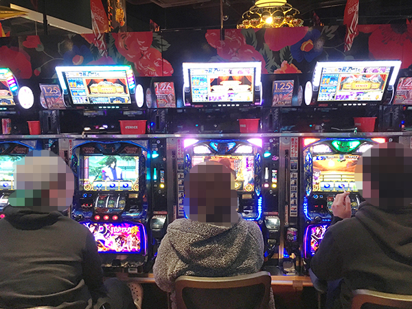 20円パチスロをチェックすると、「バジリスク~甲賀忍法帖~絆」や「アナザーゴッドハーデス-奪われたZEUSver.-」などで、好調な様子のプレイヤーたちと遭遇。楽しげにレバーを叩く姿が印象に残っている。