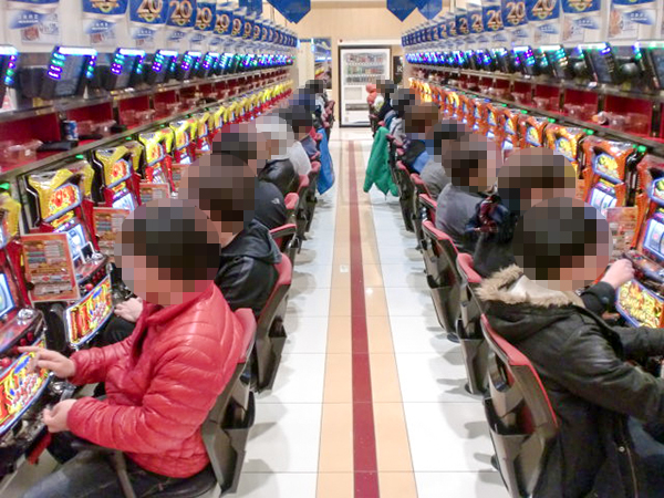 開店直後は20円パチスロの支持が厚く、沖スロや「バジリスク~甲賀忍法帖~絆」をはじめ、すぐに席が埋まっていた。