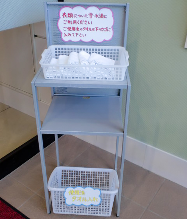 また、アメニティグッズも充実。衣類についた雪や雨を拭くタオルが用意されているなど、プレイヤーに対する心配りが目白押しであった。