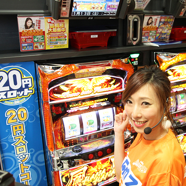20円パチスロに目を向けると、「ドリームハナハナ‐30」などのハナハナシリーズや「沖ドキ!-30」といった沖スロが盛況。シマ全体が明るい雰囲気に包まれていた。